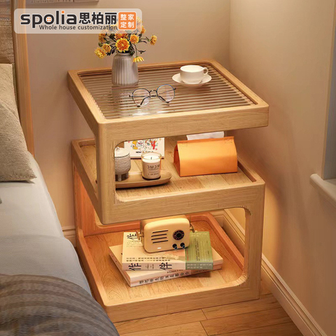 Mesita de noche moderna de madera natural, mesita de noche de lujo en forma de S con iluminación para almacenamiento de dormitorio, muebles pequeños de Bambú